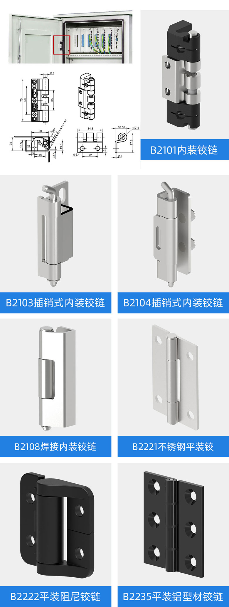斯科鉸鏈?zhǔn)墙煌ㄐ盘枡C(jī)柜必須的零部件產(chǎn)品之一。斯科B2101系列內(nèi)裝鉸鏈已經(jīng)應(yīng)用于交通信號控制機(jī)柜產(chǎn)品中,這款鉸鏈采用鍍鋅鋼材質(zhì),防腐耐用,可確保交通信號機(jī)柜的應(yīng)用強(qiáng)度及使用壽命。