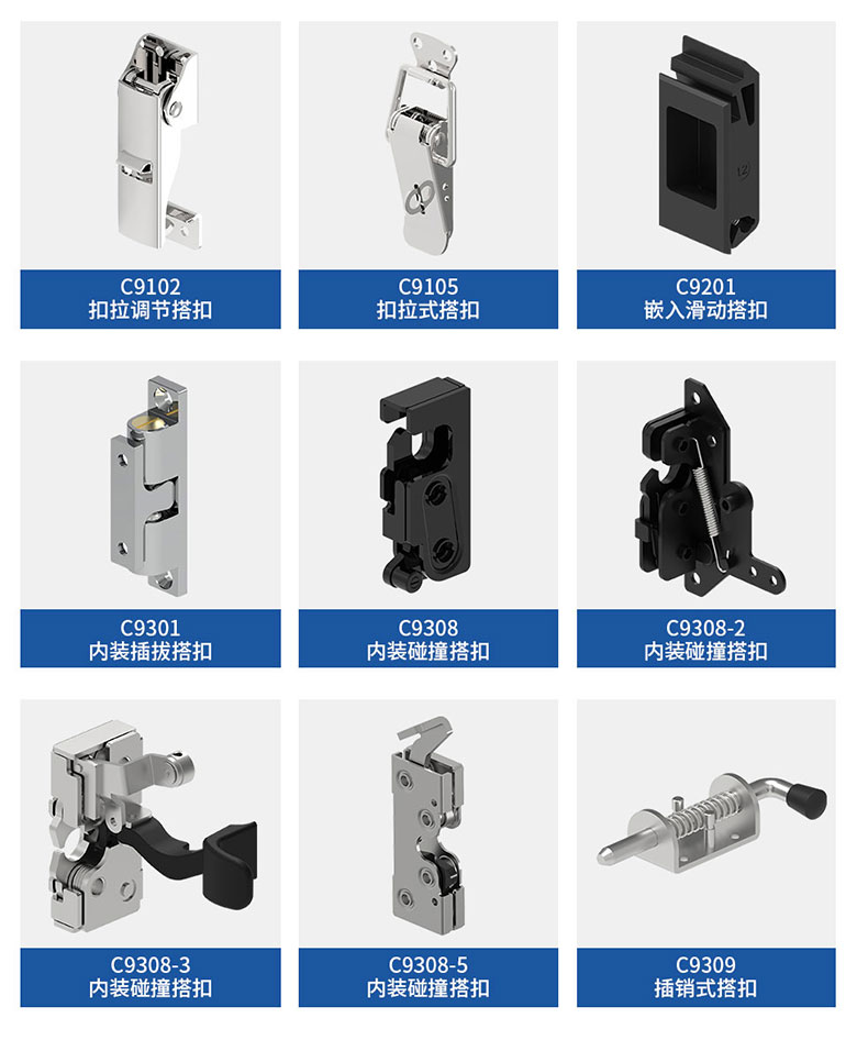 搭扣系列產(chǎn)品具有良好的密封性和強(qiáng)力迫緊功能,耐腐蝕性能優(yōu)異,在鎖緊后的防震功能能夠避免意外解扣,無論是在高頻率開合時(shí),還是需要長(zhǎng)時(shí)間處于恒定張力狀態(tài),此類特種車輛搭扣可以滿足要求。