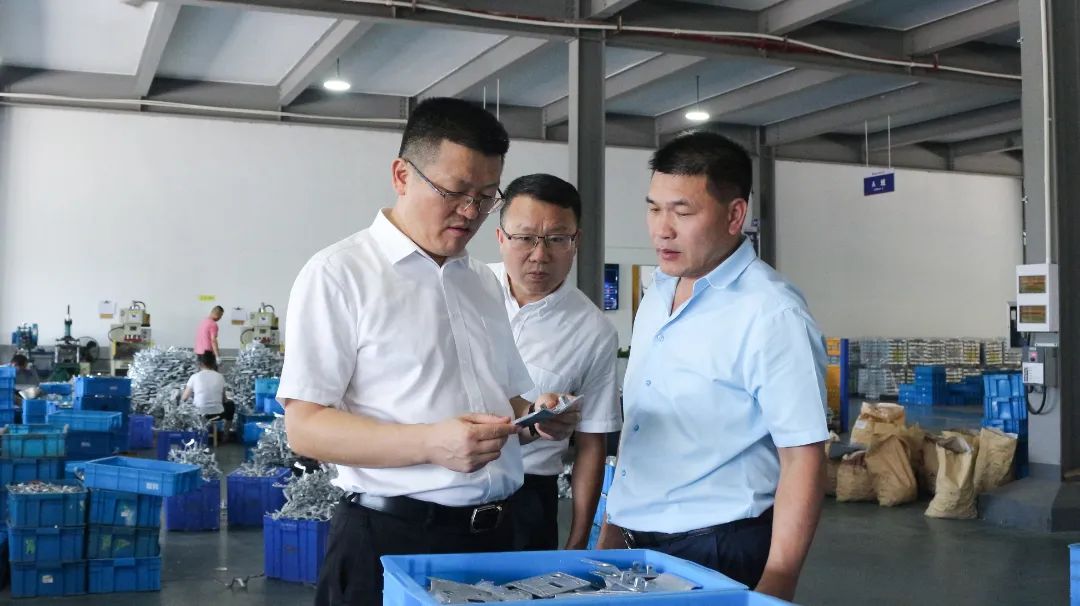 7月27日下午,紹興市政協副主席王芬祥、嵊州市政協副主席盧秋楨帶領相關部門負責人蒞臨科斯科調研指導,斯科董事長陸惠良全程陪同講解。