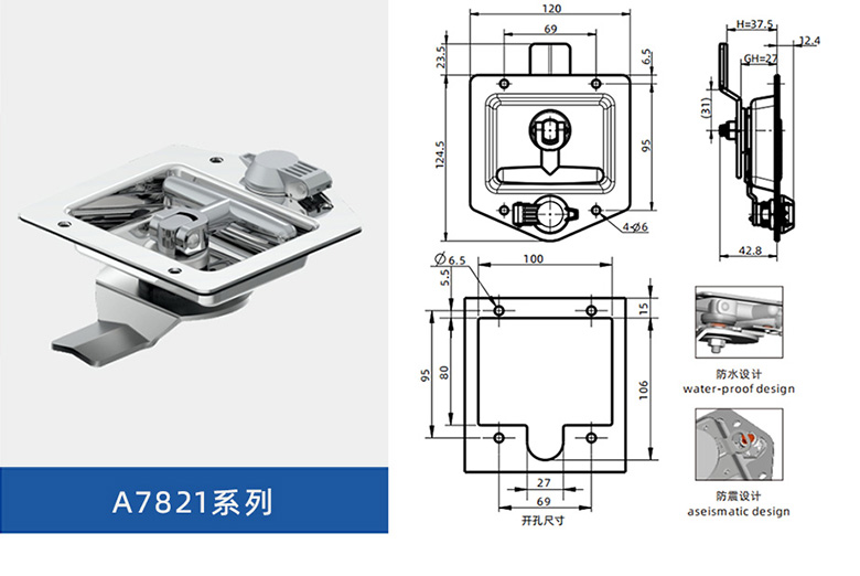 斯科發電機組門鎖產品選用優質304不銹鋼以及特殊的表面處理,提高了鎖體的硬度和耐腐蝕程度,多種規格、多種鎖緊范圍的產品可供選擇。鎖具安裝適配性高,具有防水防塵功能,能夠在惡劣條件下使用。