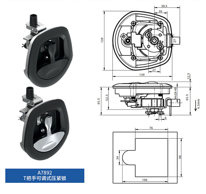 斯科壓緊鎖系列產品。主要用于拖掛車、皮卡車后蓋改裝用鎖,鍍鋅鋼壓板材質,堅固耐用,多種功能型號可供選擇,有防松、防水等多種實用設計,適合各類改裝車型戶外使用。
