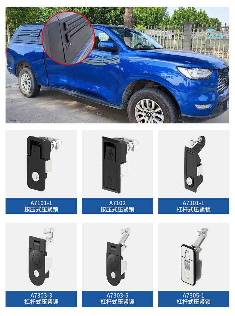 A7895機械鎖,結合戶外休閑車的使用特性,采用不銹鋼一體壓鑄面板,防生銹,防腐蝕,使用壽命更長,適用于各種嚴苛戶外環境。先進的生產工藝制造,在滿足技術需求和應用安全的前提下成本更低。彈簧型把手,防卡防盜,提升越野、特種車型的機械手感。另外、還有多款皮卡后蓋鎖可供選擇。