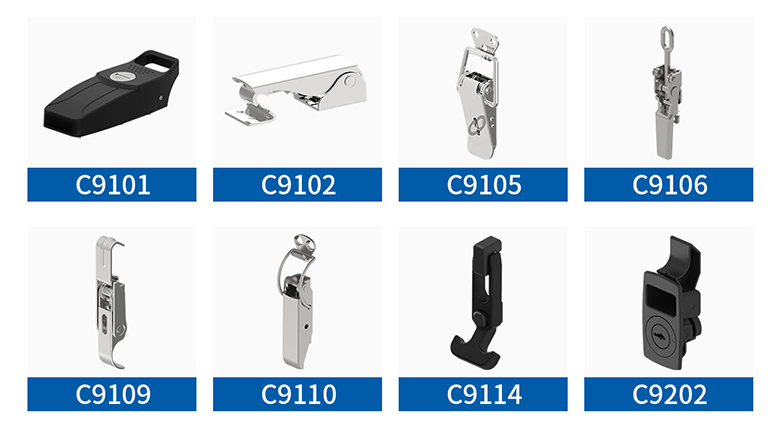 扣拉式搭扣系列產品具有良好的密封性和強力迫緊功能,自帶安裝定位器,便于安裝,帶鎖芯、無鎖芯自由選擇,鋅合金材質,防腐防銹。