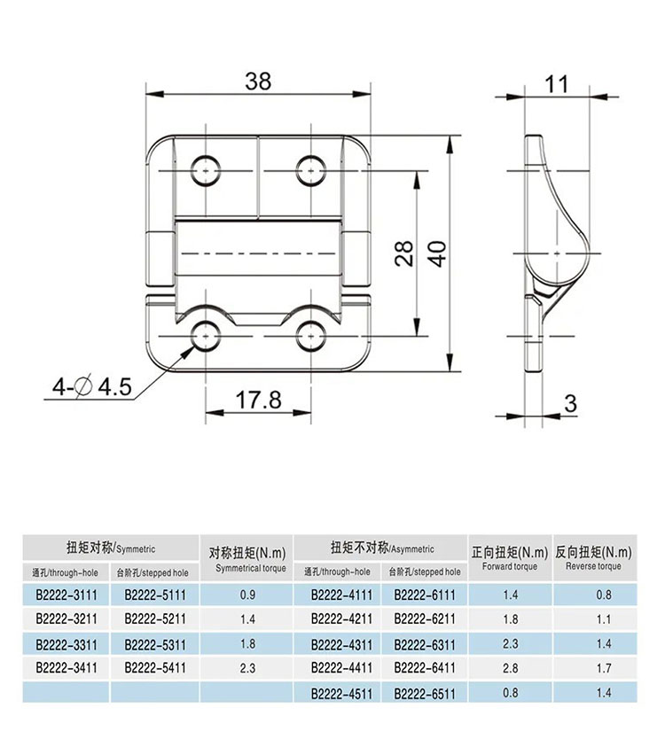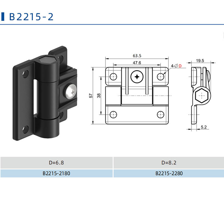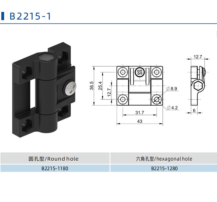 B2215可調阻尼鉸鏈采用POM具有良好的綜合性能,包括力學性能、耐熱性、耐磨損性、耐化學藥品性,且摩擦系數低,有一定的阻燃性。附帶阻尼緩沖功能,降低關閉時的沖擊力,通過擴大阻尼器開啟角度,實現平滑的運動。適用場景餐車、安全欄、配電板、柜子、鋁型材框架、工業設備等。