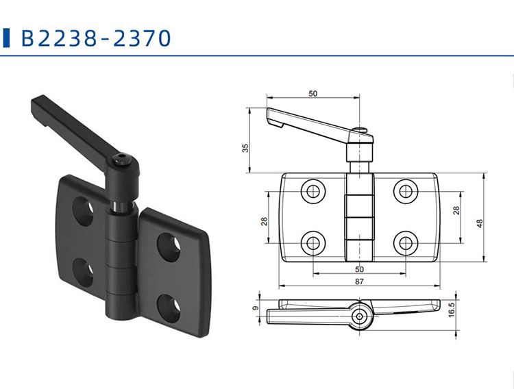 斯科推出的新型B2238系列鎖定鉸鏈,功能更強大、品質更穩定,采用了優質PA材料和經過特殊處理的表面處理工藝,耐久性非常強,能夠保證門板的長期穩定使用。其可移動的杠桿使鉸鏈可以鎖定在任何位置,只需簡單的拉動和扭轉手柄,就可以輕松固定門或蓋,這種靈活性使得門板可以保持任意位置打開,并且可以調節門的打開和關閉力。