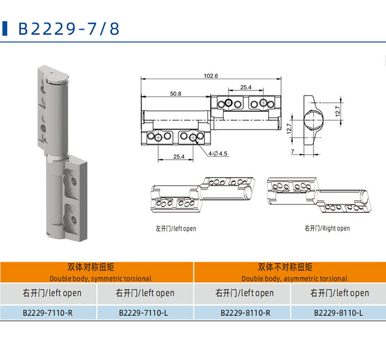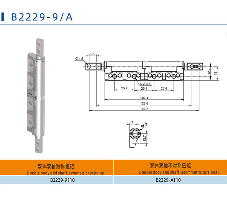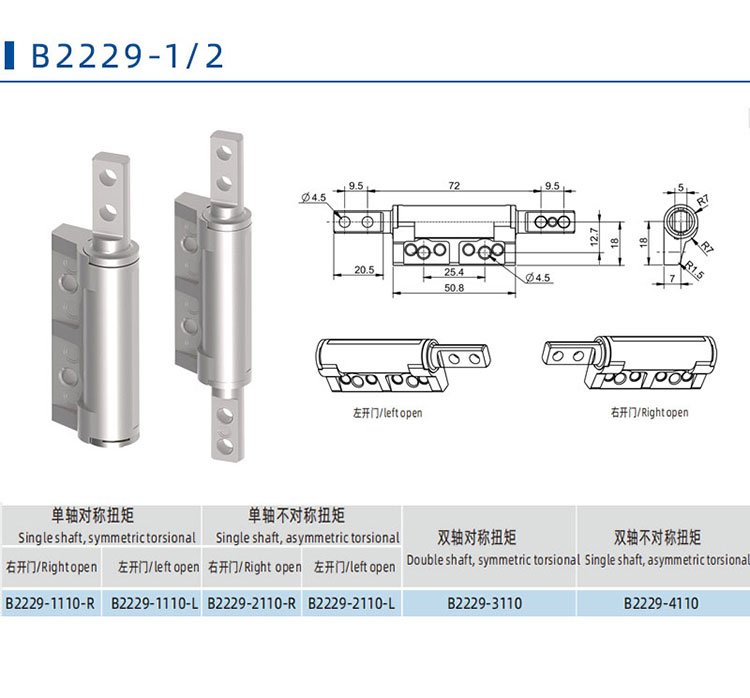 B2229阻尼鉸鏈鋅合金材質厚實穩固,經典結構內外兼修。輕柔平穩順暢的開合表現提高了使用的安全性和靜音效果,幫助用戶精確地將設備定位到所需的位置。安裝過程中,其便捷性讓企業制造商能夠顯著提升安裝效率。