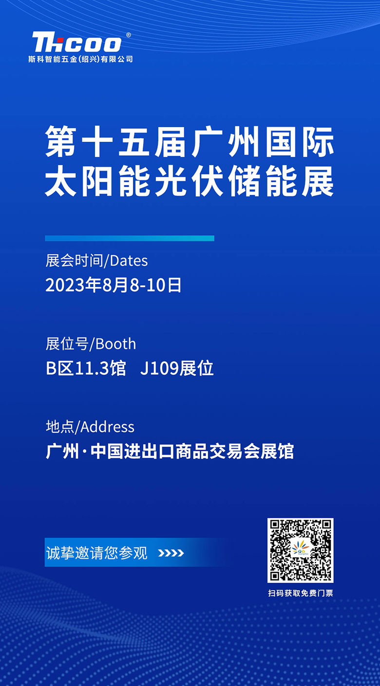 2023世界太陽能光伏暨儲能產業博覽會(原第15屆廣州國際太陽能光伏儲能展)即將于2023年8月8-10日在廣州·廣交會展館隆重舉辦!本屆展會斯科智能五金將攜眾多新款產品和強大解決方案震撼登場,誠摯的邀請您前來洽談及體驗!
