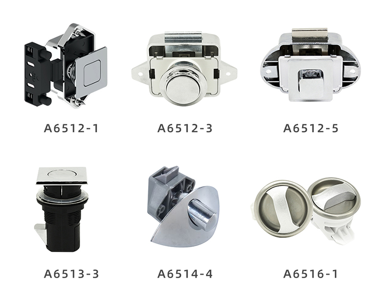 斯科旋轉型舌鎖及舌頭鎖系列產品,款式多樣,手感舒適,減少或消除因震動而導致的噪音或撞擊聲,外觀精美,經久耐用,折彎舌片設計,舌片更貼合柜門。可滿足客戶的不同應用需求。