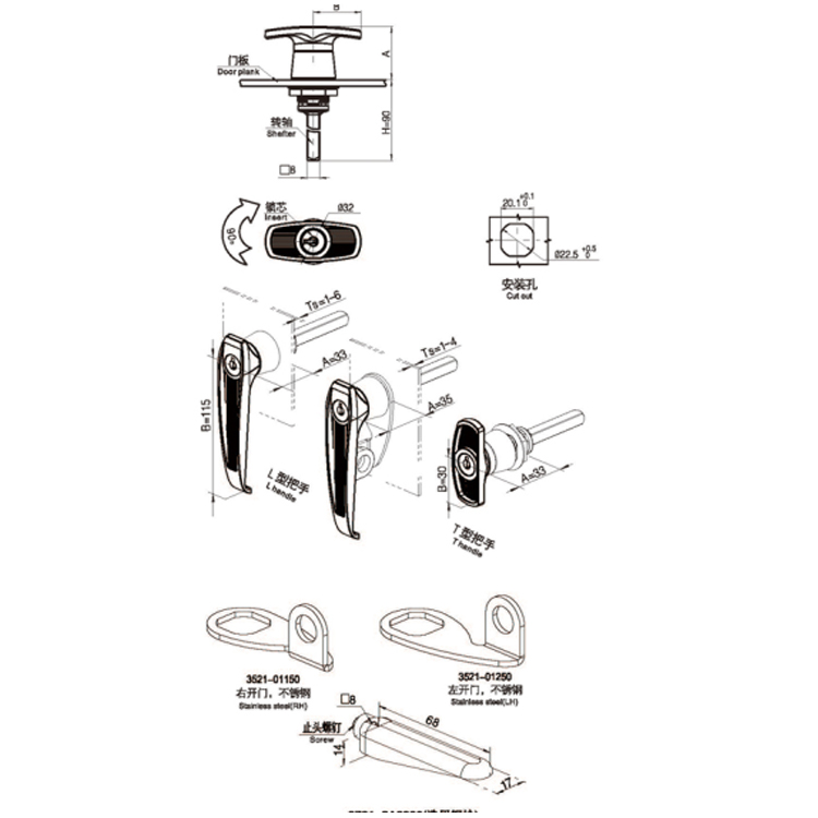 L型把手可調式轉舌鎖-A610