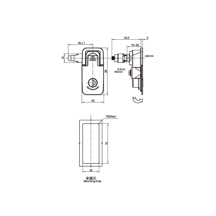 按壓式360度旋轉壓緊鎖,無鎖芯-A7101-1011